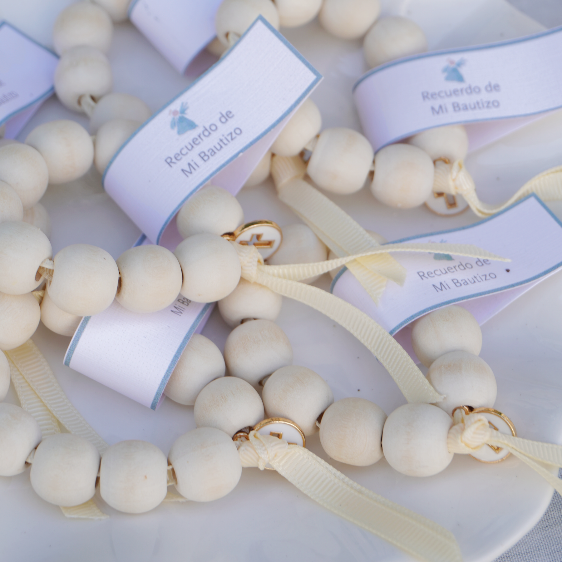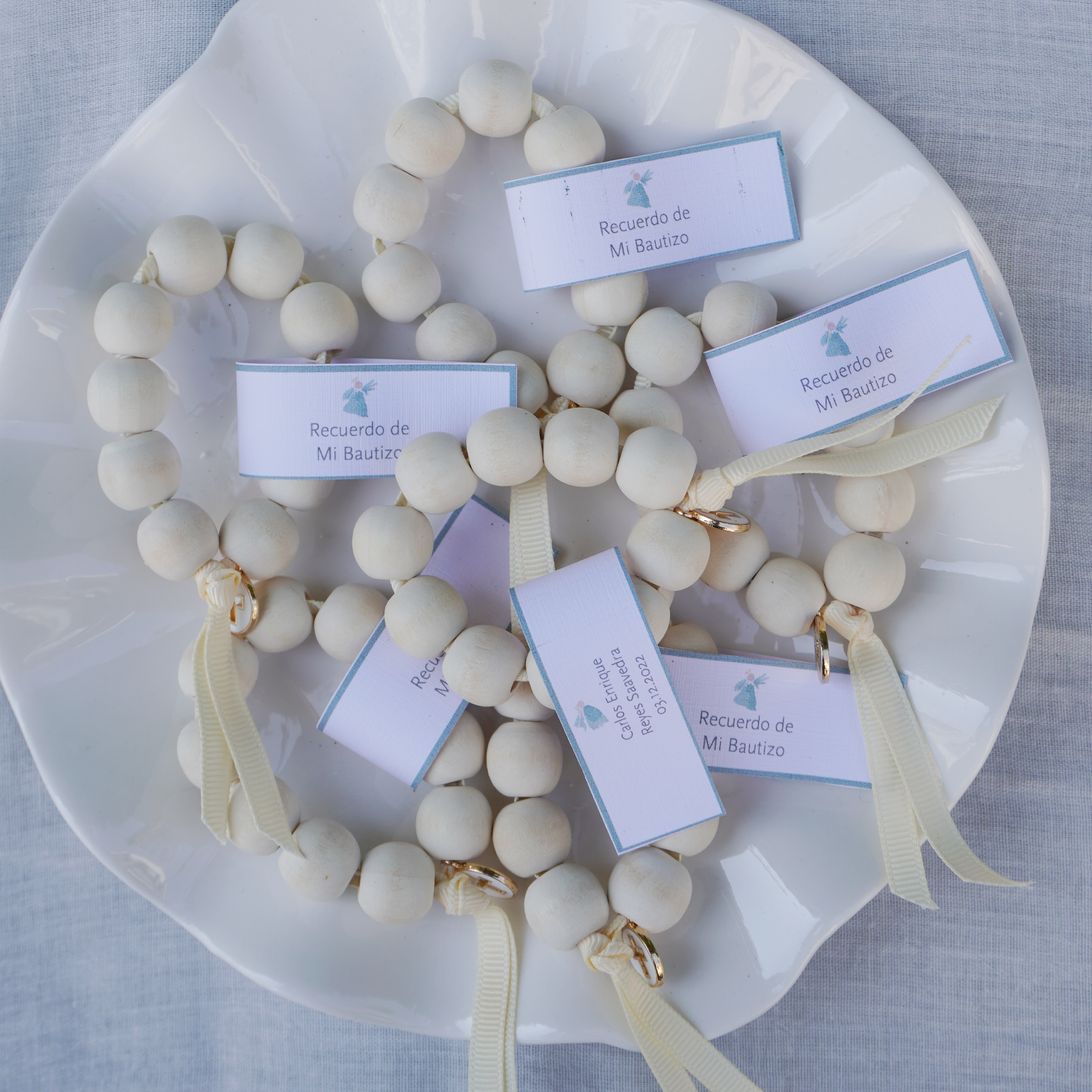 Incluye: 6 uds. denario de madera con medallita + tarjeta con angelitos