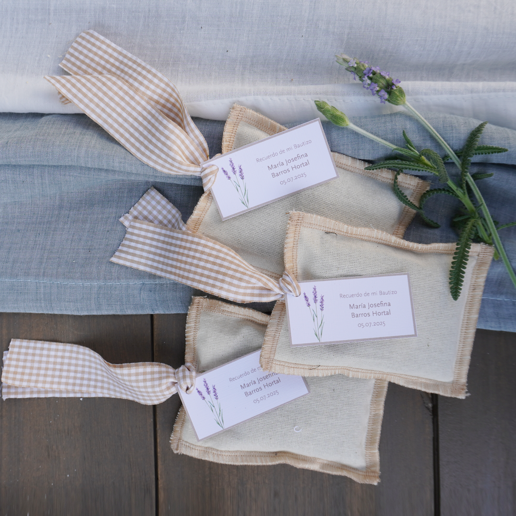 Nuestros saquitos de algodón rellenos de lavanda seca, son un recuerdo delicado y atemporal para bautizos, primeras comuniones y otras ocasiones importantes.