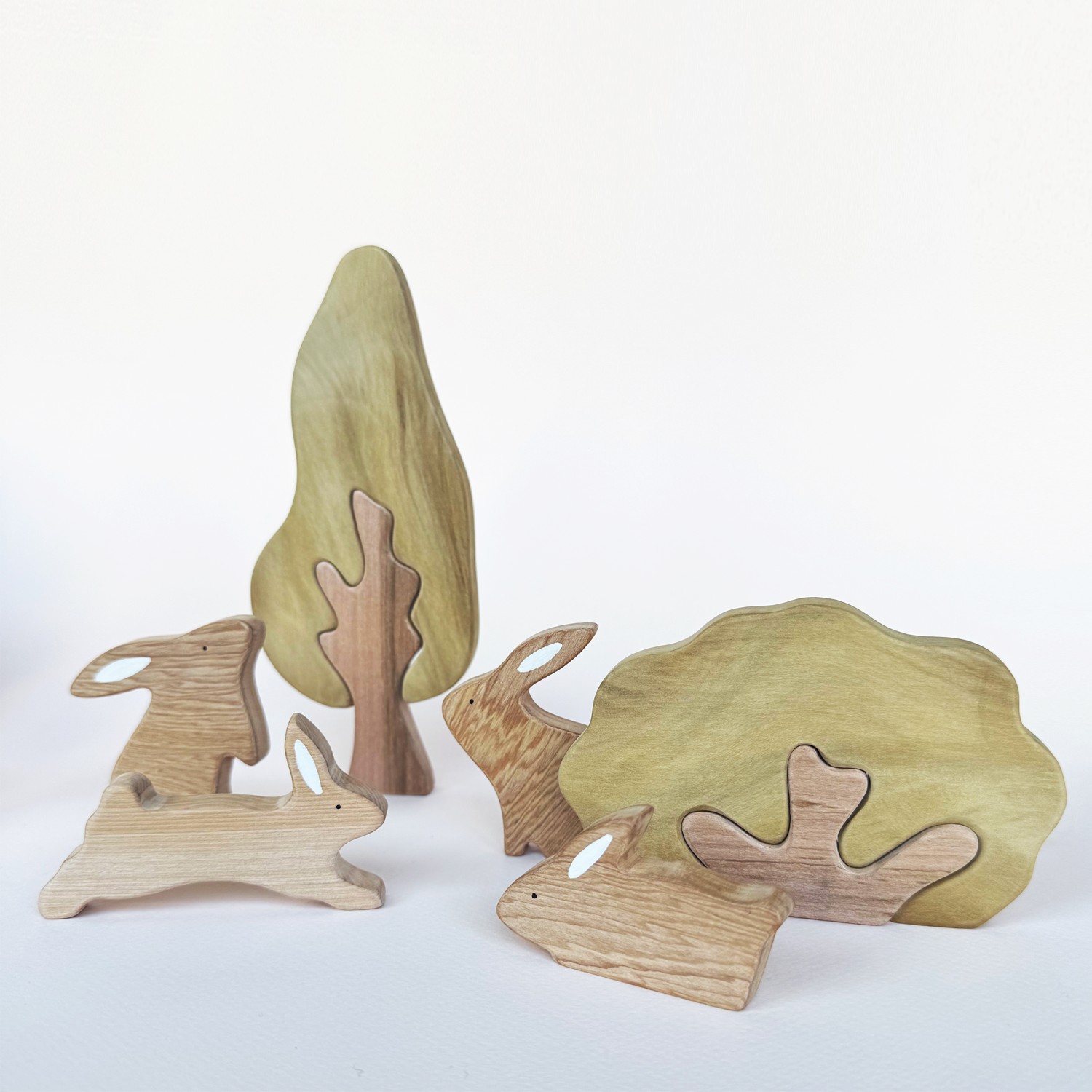 Estos sets invitan a coleccionar y crear familias —patitos, ositos, conejos, venados y árboles— fomentando la imaginación, la narrativa y el juego libre. Inspirados en pedagogías como Montessori y Waldorf, su diseño minimalista permite que los niños y su imaginación sean los protagonistas, sin estímulos excesivos.