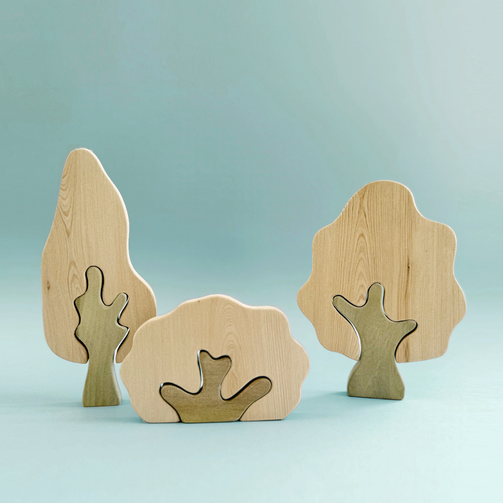 Descubre la magia del juego simple y significativo con nuestros sets de árboles en madera nativa. Cada figura ha sido cuidadosamente confeccionada a mano por artesanos del sur de Chile, utilizando maderas nativas recicladas como mañío, laurel y alerce. Sin barnices, sellos ni pinturas: solo madera natural, muy suave al tacto y segura para todas las edades.
