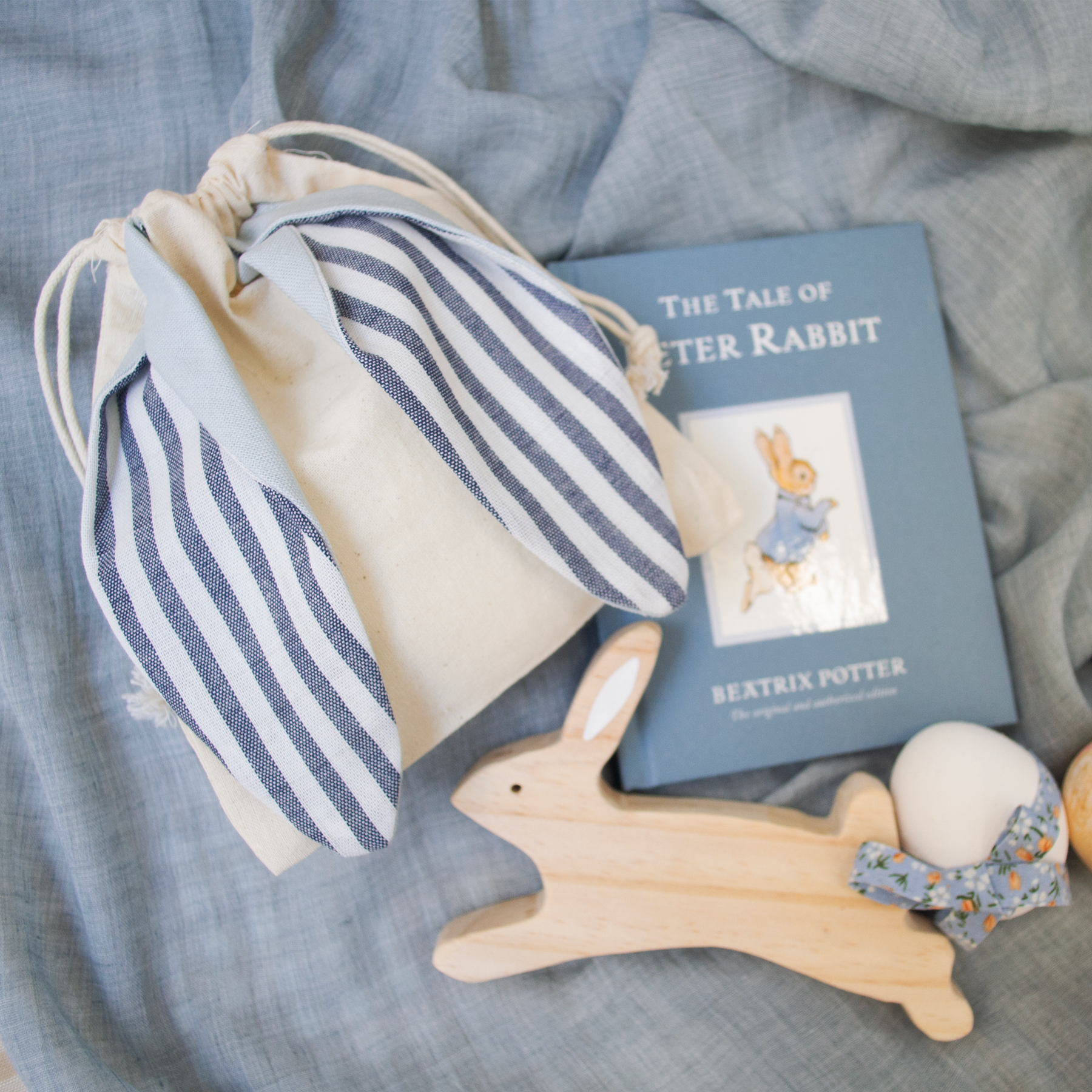 Hecha en algodón y lino, con un tamaño perfecto para que los niños recolecten sus huevitos de chocolate de forma cómoda y entretenida. Cuenta con un práctico cordel para abrir y cerrar fácilmente, y delicadas orejitas de conejo que le dan un toque único y especial a la celebración.